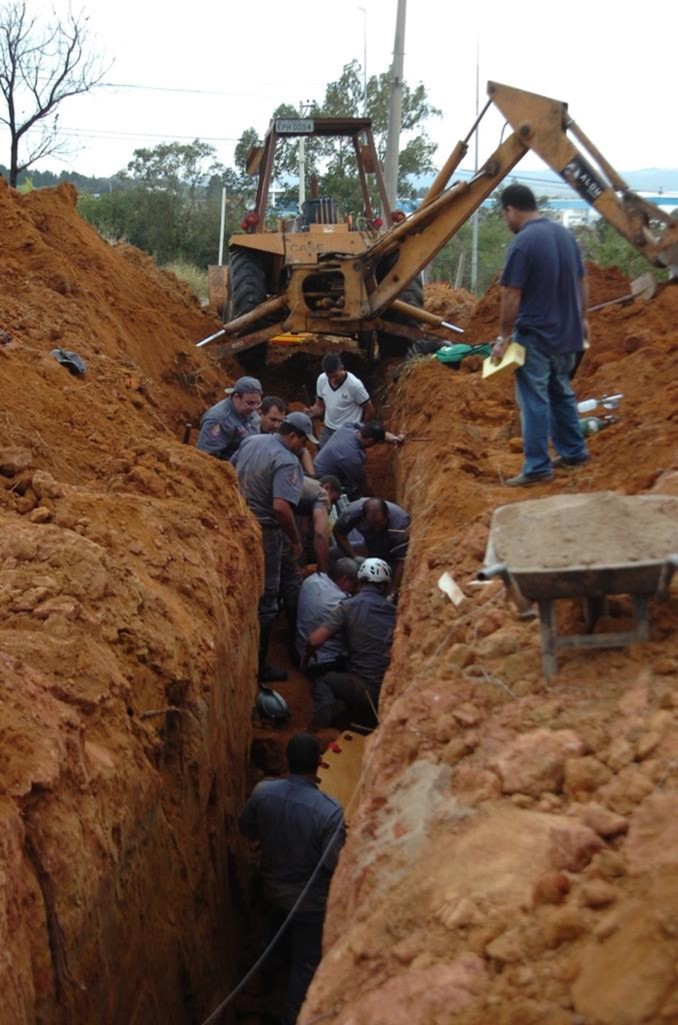 O link que abre esta coluna, dá conta das 50 fatalidades em valas a céu aberto nos últimos 2 anos. A foto ao lado, dá bem uma ideia de como cavar uma sepultura ao invés de uma vala, máquina pesada na borda da vala, material escavado deveria estar a pelo menos 1 m da borda, operário sem capacete, vala com mais de 1,5 m de profundidade sem escoramento, observador na borda da vala, nenhum dispositivo para entrar e sair da vala.